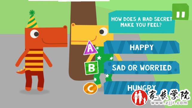除了学习“内裤规则”和“内裤歌”,为了让孩子强化记忆这五条信息,你还可以在手机上安装“和内裤恐龙一起玩” 这个手机游戏(app store 搜索:Playtime with Pantosaurus)。